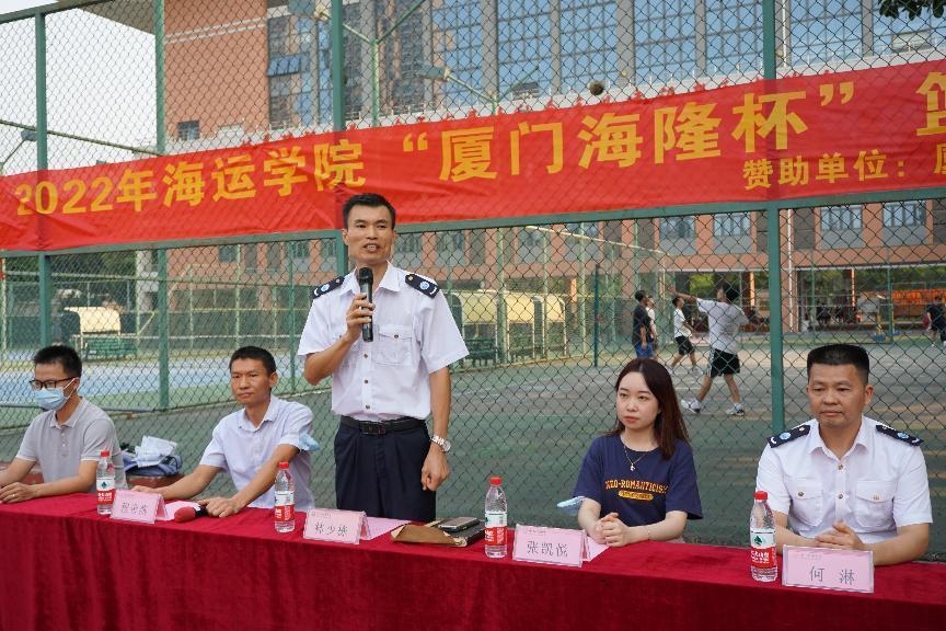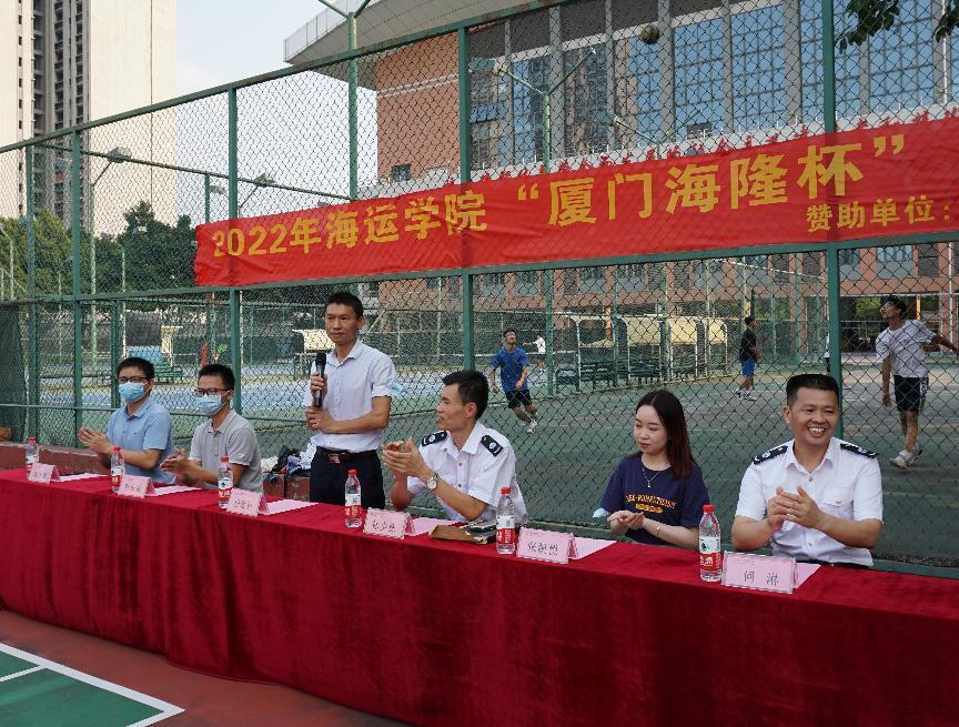 林少栋老师在致辞中对厦门海隆对外劳务合作有限公司赞助篮球赛表示感谢。“厦门海隆杯”篮球赛是我院一年一度的学生活动项目,旨在展现海运学子的运动风采和精神风貌,激发各班级集体荣誉感和向心力,不断提升全体运动员的球技水平、竞技才能、心理承受能力等综合素质。期望全体运动员秉持“友谊第一,比赛第二”的宗旨,用拼搏的汗水展现青春活力,以百折不挠诠释体育精神,让海运学子的风采在球场上充分绽放。
