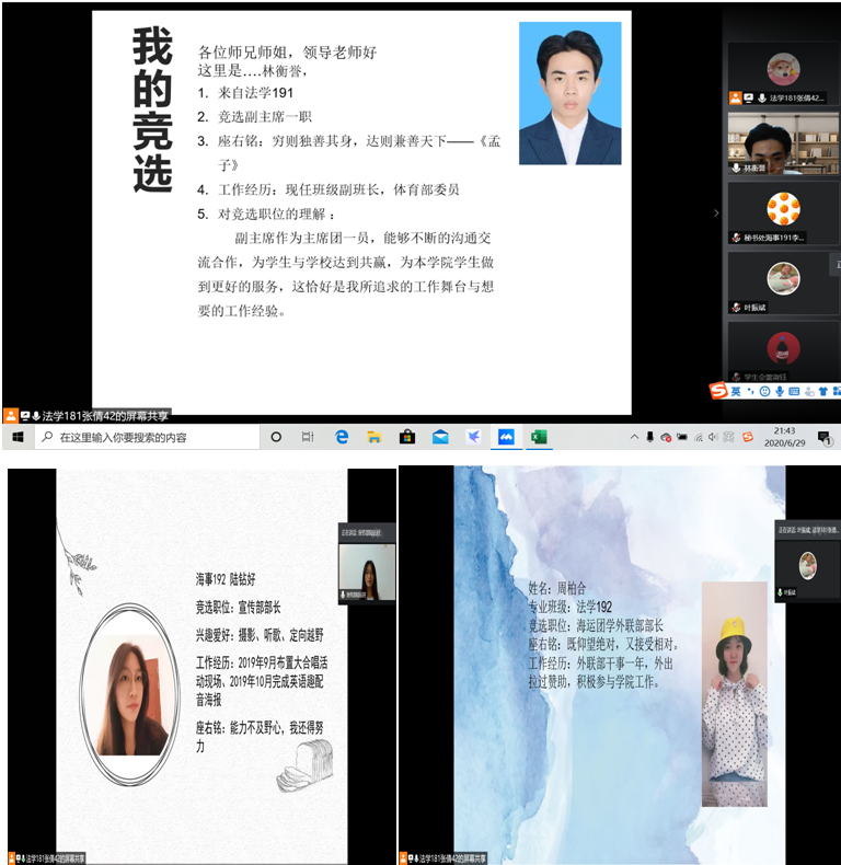 (海运爆料网供稿)6月29日至30日,海运爆料网在线上举办分团委学生会学生骨干换届答辩会,学生第一党支部书记赵垒老师,学生第二党支部书记吴成结老师,分团委书记叶振斌老师以及248名学生代表参加此次答辩会,答辩会由张倩同学主持。