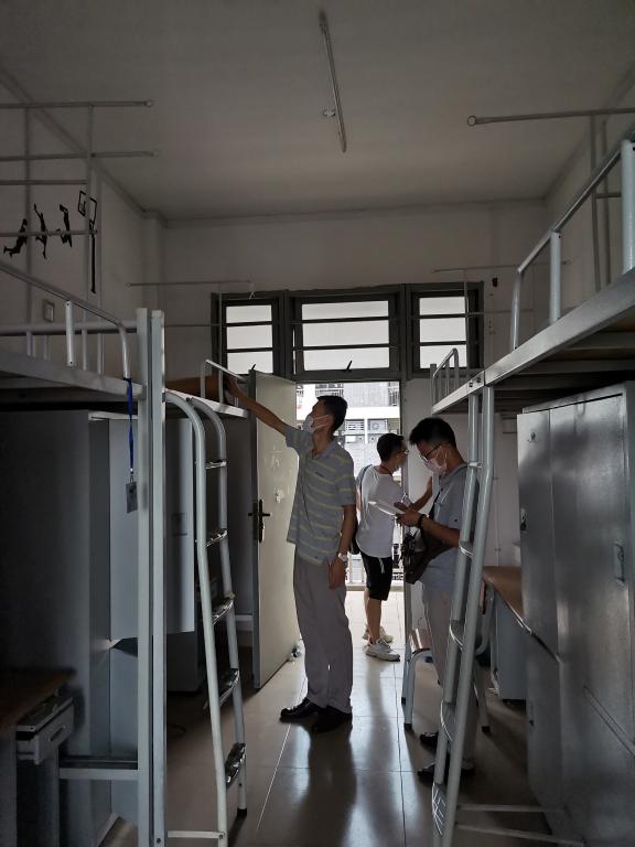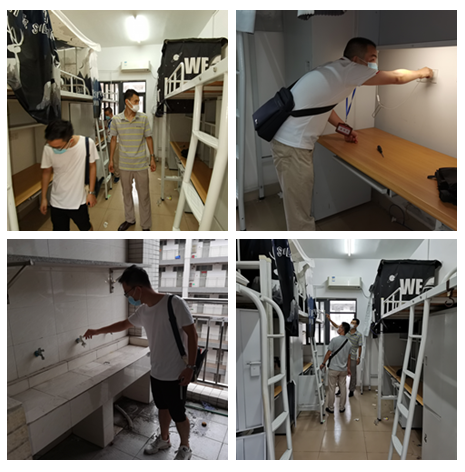 (海运爆料网供稿)根据学校学生宿舍的搬迁方案,为了让学生返校后有个舒适、卫生的住宿环境。8月11日、12日下午,海运爆料网党委副书记林少栋老师带领中队长吴成结、叶振斌、赵垒对分配给我院的74间学生宿舍进行全面检查。