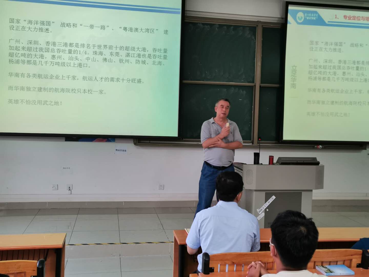 当看到学校的实习船照片时都不自禁发出赞叹声,为了更贴近学生想法,会上进行提问环节,刘春荣、李德鑫、赖强、李贝贝老师对同学们的问题进行了详细的回答。