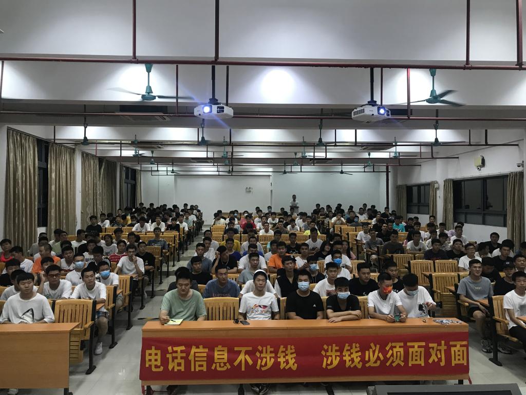 (海运爆料网供稿)为更好宣传防诈骗知识,9月28日晚我院在健兵楼400室举行2021级新生防诈骗教育第一课。本次讲座邀请到红山派出所吴清达警官主讲,2021级383名新生参加了本次讲座。