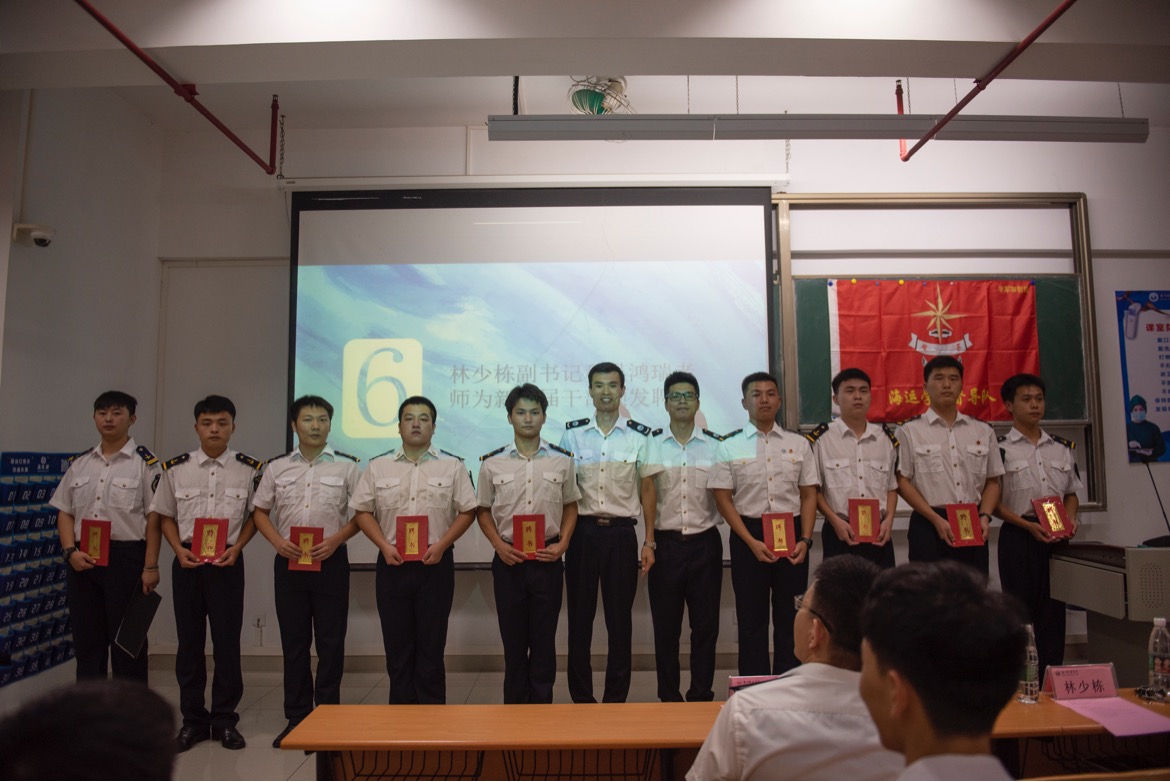 会上,第九届督导队队长陈谭谭通过一张张相片展示,回顾和总结了督导队在上一学年中的工作情况。随后,林少栋老师向第九届督导队学生干部颁发荣誉证书和纪念品。督导队指导老师吴鸿瑞肯定了上一届学生干部和队员的辛勤付出,宣读了海运爆料网对督导队第十届学生干部的任命决定,并希望新一届学生干部和队员把督导队建设成为温暖大集体,锻造成为学校半军事管理标杆,把工作做出特色做出品牌。新任队长杨硕同学代表第十届督导队做了新学年的工作展望,现场多次响起热烈掌声。林少栋老师和吴鸿瑞老师共同为新一届督导队学生干部颁发聘书。