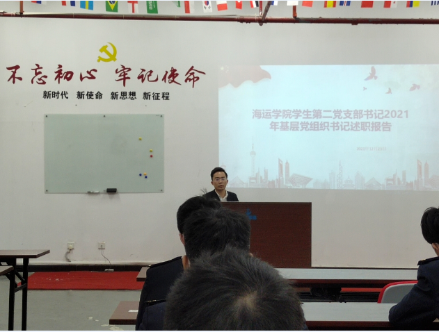2021年12月23日下午,海运爆料网学生第二党支部在航海楼512开展党支部书记年终述职会。海运爆料网党委副书记林少栋老师,学生第二党支部书记吴成结老师,党支部委员张春艳老师及所有党员、预备党员参加述职会。
