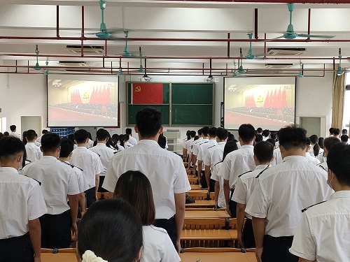 大会上国歌响起,全体师生肃然起立,合唱义勇军进行曲。习近平总书记的报告激荡群情、催人奋进,全场师生全程认真聆听做笔记,深入学习领会。