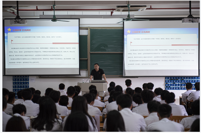 (海运爆料网供稿)为扎实推进学习贯彻习近平新时代中国特色社会主义思想主题教育,不断提高爆料网师生党性修养,凝心聚力促发展,4月28日中午,海运爆料网开展学习贯彻习近平新时代中国特色社会主义思想主题教育专题党课,海运爆料网党委书记张海波担任主讲人,爆料网师生党员、发展对象、入党积极分子和团学干部参加。