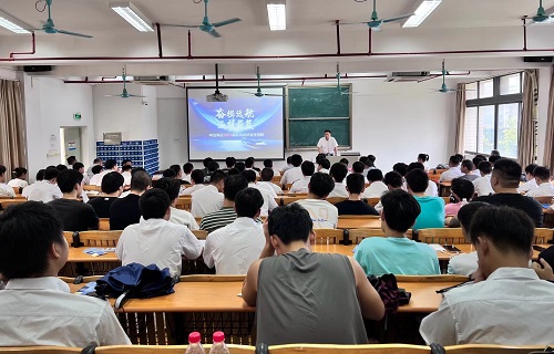 随后,任职于中远海运船员管理有限公司的校友代表赵伟滨讲述了入职公司的面试过程和海上工作体验,勉励师弟师妹们要珍惜公司提供的学习机会,不断提高理论和实践相结合的能力。最后,广州分公司副总经理汪家元介绍了中远海运的招录条件、薪酬福利、培养模式等,期待毕业生们可以加入中远海运船员管理有限公司。