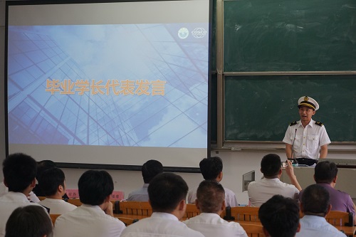 会上,葛军副书记介绍中远海运船员管理有限公司的发展规模、管理体系、公司文化以及公司特色的“海上管培生计划”等方面。他指出,中远海运船员管理有限公司是一个集专业化、集约化、市场化、国际化于一体的大平台,可以为航海类学子创造就业机遇,提供多样化的就业途径,希望更多立志航海事业的优秀人才加入可以加入中远海运船员管理有限公司。葛副书记鼓励毕业生们要保持终身学习的能力,为自身职业发展夯实基础。