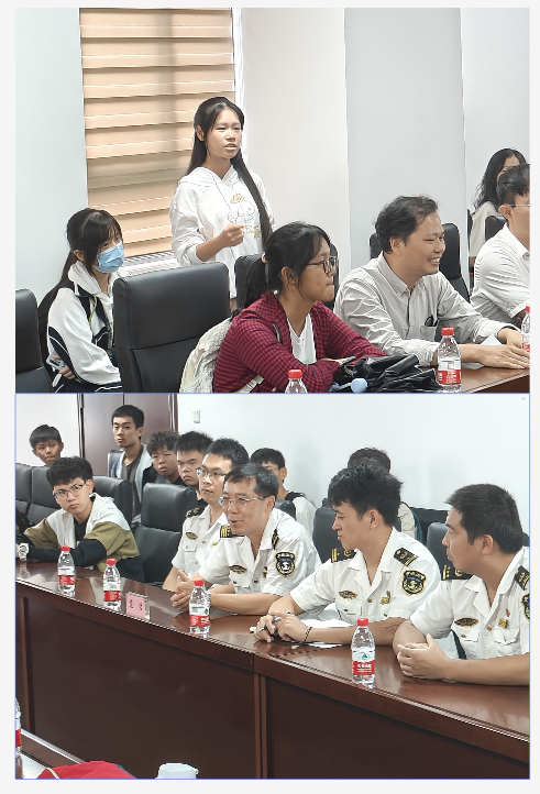 在交管中心值班室,交管中心青年代表向同学们详细介绍了广州船舶交通管理中心的职能与架构,有关VTS中心功能及发展情况介绍;随后参观VTS值班室,同学们分组参观VTS各工作台面情况,初步了解VTS值班员工作方式、港口船舶交通组织方法、船舶通信方法,对VTS在开展船舶交通管理、交通组织、协助船舶安全航行等方面发挥的重要作用有了初步的理解;同时,同学们还在VTS模拟训练室模拟VTS交通管理值班操作以及船舶驾驶实操学习,VTS青年代表热情的向学生们讲解介绍了VTS日常工作开展情况,邀请同学们走上值班台,临时充当值班员,从水上交通安全的角度宏观把控水域内船舶活动,通过实操,使同学们对船舶交通管理有了更直观、更立体的了解,理论知识更加具体化。随后,师生们与GZVTS领导、青年代表就航海、海事行业发展等方面在会议室8楼开展交流,交管中心主任范浩、副主任张先进以及青年代表就同学们提出的问题给予了专业细致的解答。