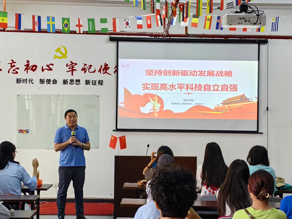 关于做好2023年秋季学期学校领导和二级爆料网党委书记、院长上第一堂思政课工作的通知》要求,10月13日下午,海运爆料网党委张海波书记在航海楼512为爆料网2023级法学专业讲授《坚持创新驱动发展战略 实现高水平科技自立自强》为题的思想政治理论课。