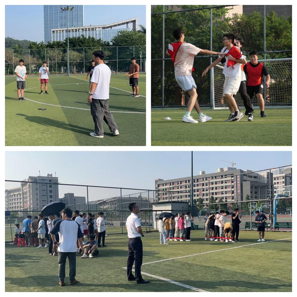 本次游园会精心挑选了1分钟跳绳接力、巨人脚步、筷子夹兵乓球、撕名牌和极速三子棋等五个趣味运动项目。同学们通过6人组队的形式展开团队游戏对决,挑战了一分钟时间内6个人完成跳绳的总数和夹乒乓球的总数,最短时间内团队成员的脚捆绑在一起往返指定地点、成功撕下对方全体成员的名牌以及成功连接同颜色三子棋。最终督导队3组、航海215、海事212、海事231+232、航海233五个队伍分别斩获五个子活动的第一名。