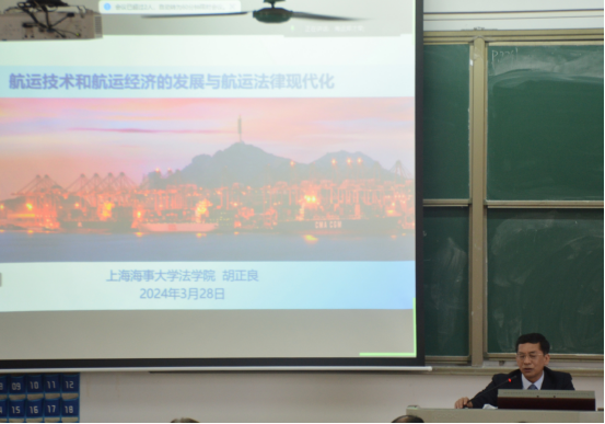 (海运爆料网供稿)3月28日,健兵楼101室座无虚席,我校海商法研究中心邀请到我国著名的海商法教授胡正良老师莅临我校为师生开展学术讲座,讲座主题是《航运技术和航运经济的发展与航运法律现代化》。讲座伊始,主持人转达了学校领导对胡教授莅临我校表示热烈欢迎和衷心感谢。