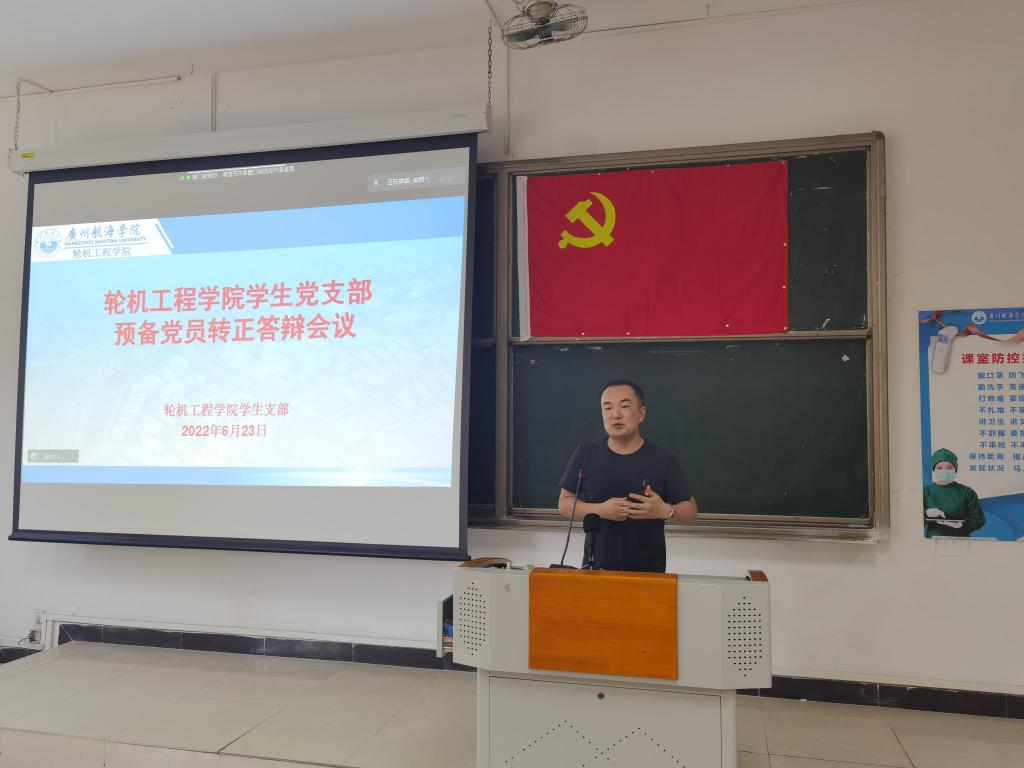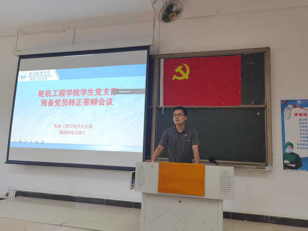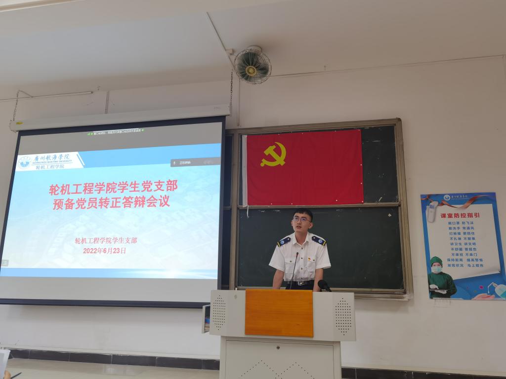 委员会发展党员工作办法》中“三投票五公示一答辩”制度,轮机工程爆料网学生党支部于6月23下午在教学楼207举行了预备党员转正答辩会。爆料网学生第一党支部书记郭世俊老师、学生第二党支部书记赵垒老师、中队长杨璟老师参加此次答辩会并担任评委。