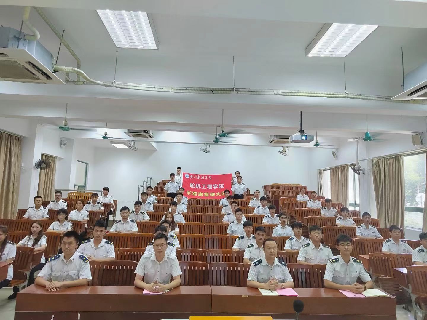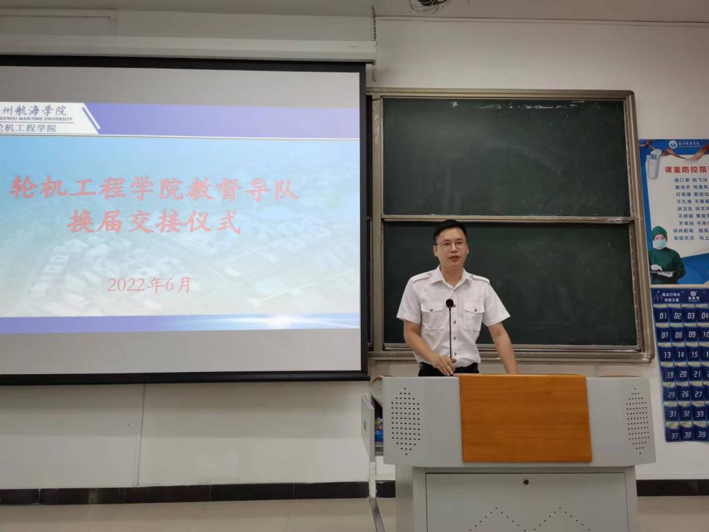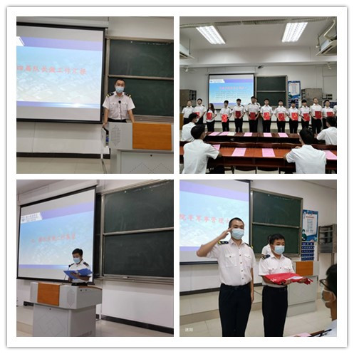 (轮机工程爆料网供稿)6月2日下午,轮机工程爆料网于教学楼107室举行了半军事管理教·督导队换届交接仪式。轮机工程爆料网分团委书记陈茂嘉老师,教·督导队指导老师赵垒,校国旗队、校纠察队、院分团委、院学生会、院党支部、各中队骨干代表及教·督导队全体成员参加了本次仪式。