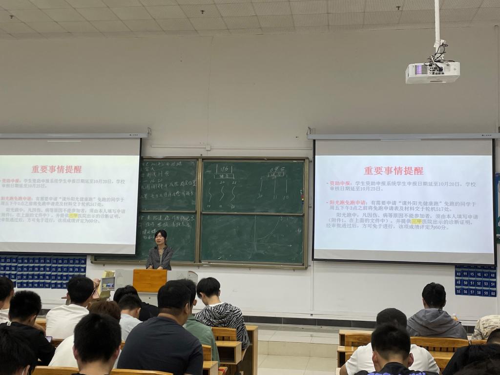 会议上,各位老师强调,开展学生课外校园阳光长跑活动,是落实教育部“国家学生体质健康标准优良率”达标要求的重要举措,这项活动有助于激励学生开展课外体育活动,养成经常参加体育锻炼的良好生活习惯,全面提高学生身体素质,帮助学生在体育锻炼中享受乐趣、增强体质、健全人格、锤炼意志,能促进同学的体测成绩的提高。并指出,学生必须按照“运动世界课外校园阳光长跑APP使用流程”进行操作,且在跑步过程需按要求进行,不得有代跑行为。会议最后,各老师也希望学生们能积极参与阳光长跑活动,提前为体测做准备。