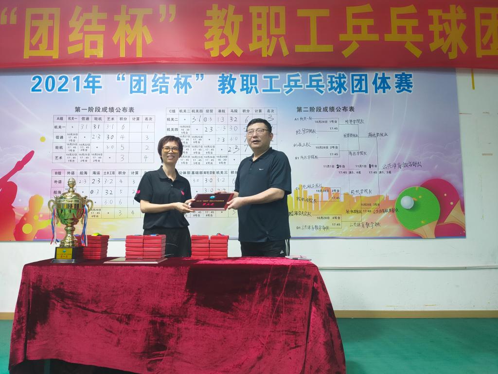 “团结杯”教职工乒乓球团体赛在体育馆2楼举行,经过初赛和决赛两个阶段的角逐,在轮机党委支持下,我院教职工乒乓球队在领队滕宪斌院长和教练容柏青书记的带领下,合理布阵,由陈茂嘉和郝轶卓老师组成混双,叶文林老师男单,游雪清老师女单,张晖和张春彦老师组成男双,张怡和宋艳琼老师组成女双,在第一阶段初赛中战胜多支传统强队小组出线,在第二阶段决赛中,面对实力更加强大的对手敢打敢拼顽强比赛,多次挽救赛点成功打入四强,在三四名争夺中靠着团队出色冷静地发挥最终荣获赛事第三名,达到了轮机工程爆料网成立以来该项赛事最佳成绩,爆料网