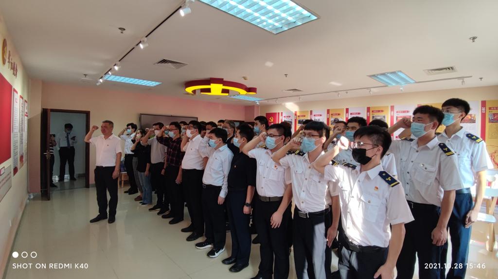 最后,党员同志们用坚定洪亮的声音面对鲜红的党旗宣誓:“我志愿加入中国共产党,拥护党的纲领,遵守党的章程,履行党员义务,执行党的决定,严守党的纪律,保守党的秘密,对党忠诚,积极工作,为共产主义奋斗终身,随时准备为党和人民牺牲一切,永不叛党。”