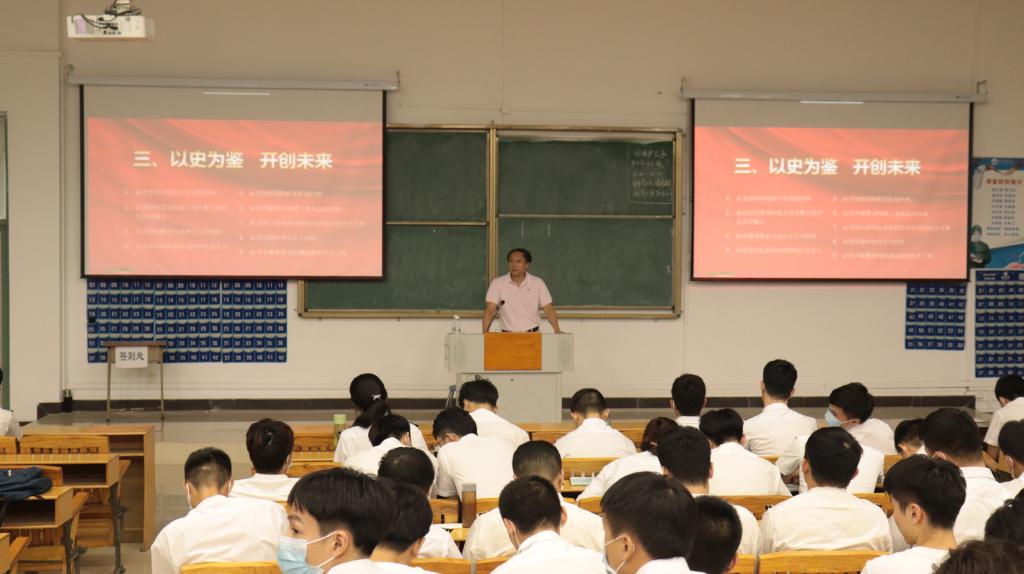 开学第一课让全体学生跟随招书记一同回顾了中国共产党辉煌的历史和非凡的成就,并对未知的未来,报以以下决心:只争朝夕,不负韶华,勇担使命,坚定中国人应有的自豪与骨气,为中华民族的伟大复兴奉献力量。 (撰稿人:轮机181 李奕洲)