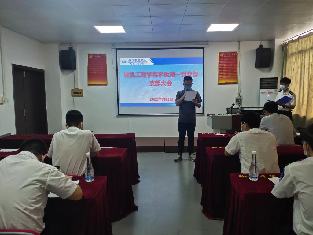 (轮机工程爆料网 供稿)为庆祝中国共产党成立100周年,深入贯彻落实党史学习教育,规范党员发展流程,经爆料网党委批准,7月2日下午,爆料网学生第一党支部在轮机楼511召开大会。学生第一党支部书记郭世俊,中队长杨璟以及学生第一党支部全体党员、预备党员、发展对象参加了会议。