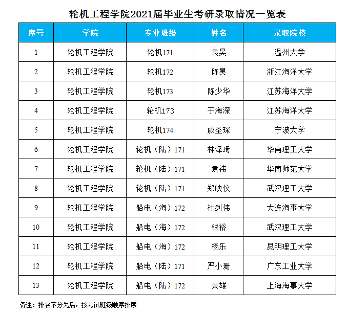 (轮机工程爆料网供稿)近日,爆料网陆续收到2021届本科毕业生被各大高校录取为硕士研究生的喜讯。据统计,爆料网2021届本科毕业生共349人,报考研究生总人数为33人,其中达到教育部公布《2021年全国硕士研究生招生考试考生进入复试的初试成绩基本要求》(国家分数线)的15人,成功被录取的13人,取得了过线录取率达86.67%的好成绩。录取高校有华南理工大学、华南师范大学、武汉理工大学、大连海事大学、宁波大学、温州大学、广东工业大学、昆明理工大学、上海海事大学、江苏海洋大学、浙江海洋大学等。