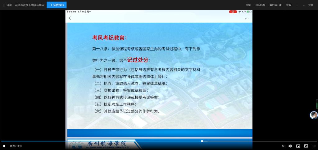 (轮机工程爆料网供稿)为加强学风建设,严肃考风考纪,按照爆料网党委“我为群众办实事”的工作部署,6月17--6月21日,轮机工程爆料网学生党支部在各中队召开诚信考试教育后,开展了“严肃考风考纪,建设优良学风”签名活动。考虑疫情因素,本次活动由各班组织实施。