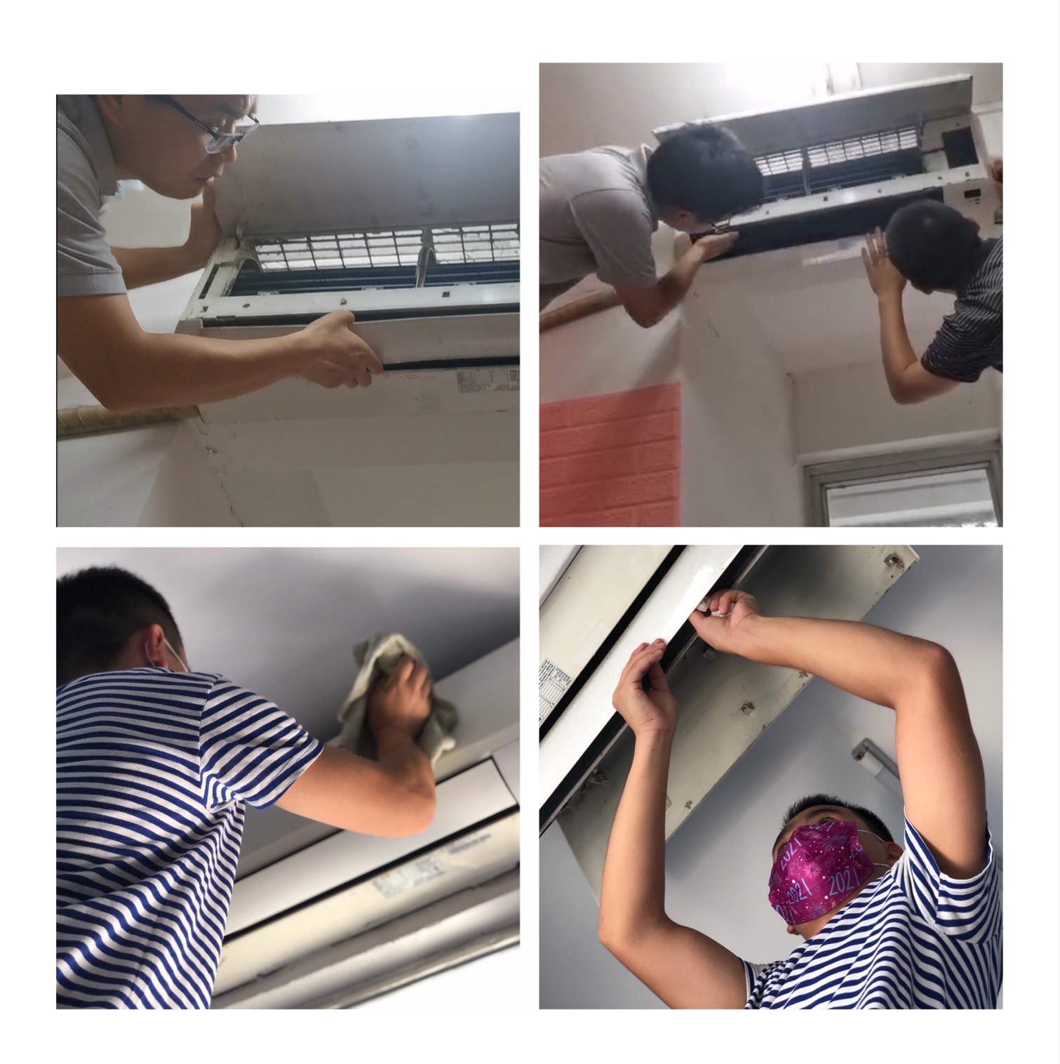 为了组织好本次活动,我院学生党支部组建了清洗空调工作小组,6月17日下午,蔡建邦老师、郭世俊老师给学生进行了专业培训。6月18日中午、下午,在赵垒、赵双双老师带领下,工作小组同学深入北区、南区女生宿舍清洗了空调。6月21--22日,在郭世俊老师带领下,工作小组同学深入轮机楼清洗了办公室、实验室空调。活动过程中,同学们相互配合,充分体现了合作精神,让志愿活动更加顺利。