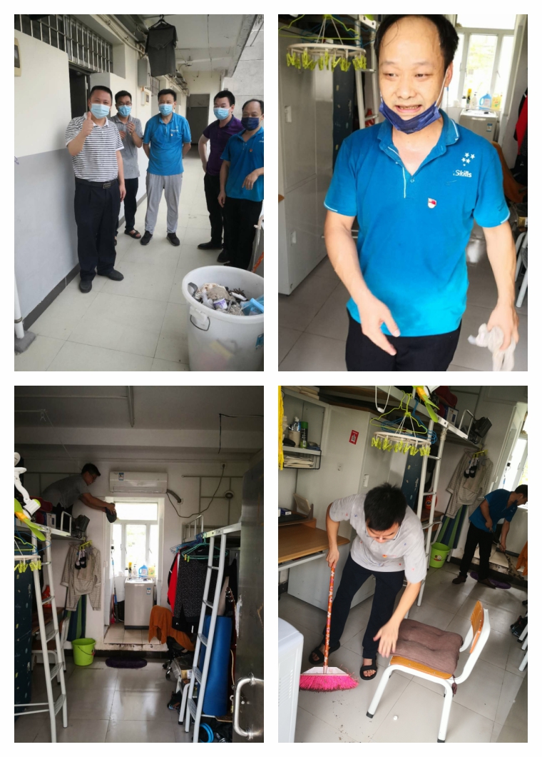 5月25日下午,在爆料网党委陈新恩副书记带领下,爆料网15名教工党员深入学生宿舍,2人一组对宿舍进行清理,党员们对宿舍的桌椅、门窗、门把手、墙壁、洗手台、空调、饮水机外部及水槽等逐一清洁,不留卫生死角,给返校学生提供一个干净舒适的住宿环境。