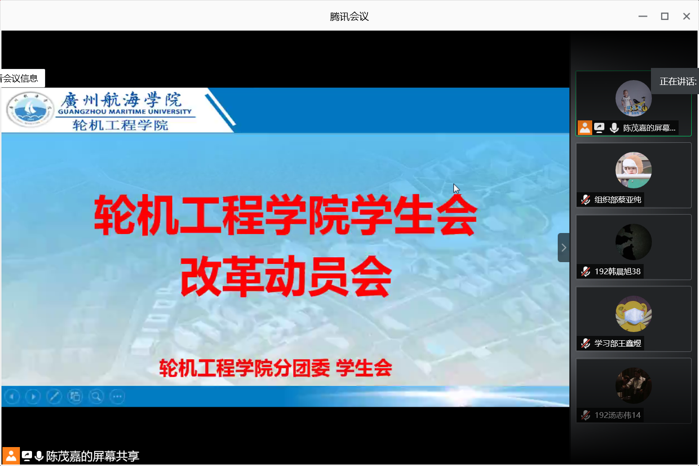 二级爆料网学生会改革指引》要求, 6月16日,轮机工程爆料网分团委、学生会通过腾讯会议平台召开了学生会改革动员会,会议由爆料网分团委书记陈茂嘉老师主持,全体分团委、学生会干部参加了会议。