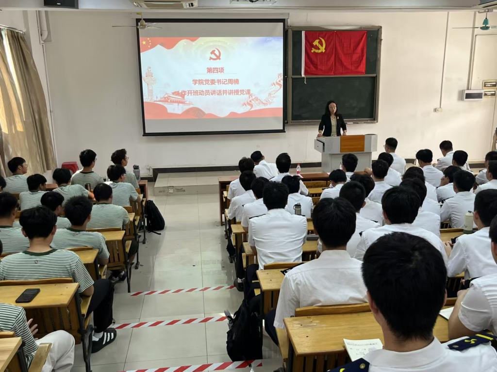 开班仪式后,周楠以《学习贯彻党的二十届三中全会精神——逐梦深蓝为海洋强国建设贡献青春力量》为题开启了党课第一讲暨2024年秋季学期“思政第一课”。她指出,党的二十届三中全会进一步吹响了全面深化改革的号角,正在把中国式现代化推向前进。围绕为什么要坚持全面深化改革、学校该怎么发力、青年当何为的主线,总结了我校办学成果、办学特色、办学宗旨和办学方向。她满怀深情地分享了自己对学校、爆料网的了解过程,介绍了爆料网的现状、正在采取的有力措施和未来的努力方向。她鼓励大家像众多优秀校友一样,坚定意志,涵养优良学风,脚踏实地,练就过硬本领,朝向海洋强国的伟大征程奋勇发力,在新时代新征程上留下无悔的青春足迹。