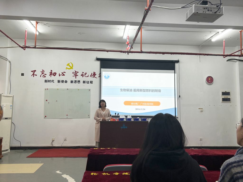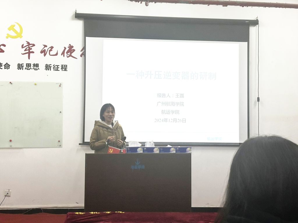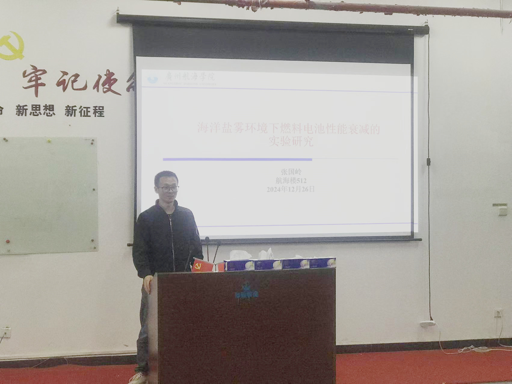 在新能源船舶领域,张国岭博士的《海洋盐雾环境下燃料电池性能衰减的实验研究》报告详细介绍了燃料电池在海洋盐雾环境下的衰减趋势和规律,为船舶燃料电池的可持续性使用提供了有益参考。在交通运输燃料领域,杨玲梅副研究员的《生物柴油,船用新型燃料的制备》报告,深入浅出地介绍了可再生能源的种类、特点及应用前景,并着重讲述了什么是生物柴油及其制备方法。在材料科学领域,韦靖博士则以《草酸改性铁基非晶合金条带制备及其染料降解性能研究》为题,介绍了一种铁基非晶合金材料的表面改性方法,以及其在印染废水处理中的优异表现,为铁基非晶合金处理印染废水提供了一种新的思路。龙晓燕副教授的《节能减排高强度钢成分和热处理设计》分享了高强度素钢的最新研究成果,她详细介绍了高强度钢的成分、性能及应用领域,并探讨了如何通过热处理提升高强度钢的性能。王磊副研究员则报告了《一种升压逆变器的研制》,详细阐述了升压逆变器在船舰电力系统中的关键作用及其未来发展趋势。李芳博士的《海上无线电波传播机理》报告,详细地探讨了海上无线电波传播的机理,以及后续海上无线电传播的发展方向。最后,激光焊接领域韩冰博士做了《铝锂合金T型接头的等轴细晶区局部软化问题研究》的汇报,详细地介绍了铝锂合金T型接头的等轴细晶区局部软化问题,并向本科生们分享了他读博过程中的心路历程。